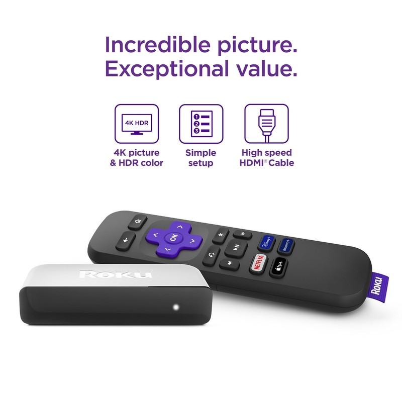 Incredible picture—with an even more incredible value. Just use the included Premium High Speed HDMI Cable to get started. With an easy on-screen experience and simple remote to find your favorites, you’ll be streaming in minutes. Don’t just watch your favorite shows, be immersed in them. Whether you’re streaming in HD, 4K Ultra HD, or HDR you’ll get picture quality that’s optimized for your TV with crisp details and rich color. It’s easy to get started—just plug it into your TV with the included Premium High Speed HDMI Cable, connect to the Internet, and start streaming. With a short step-by-step setup and an easy on-screen experience, you’ll be watching your favorites in minutes.
