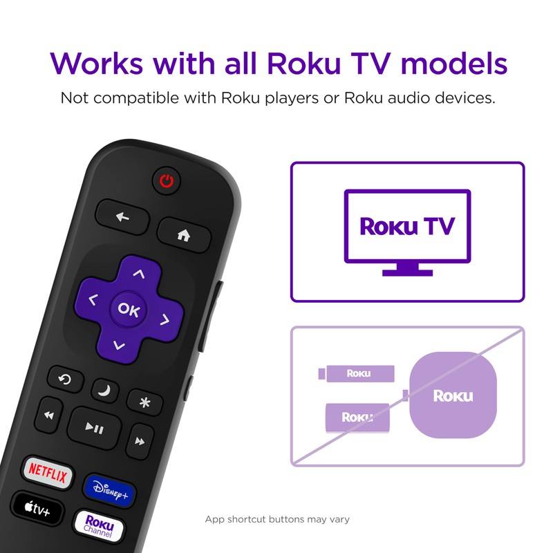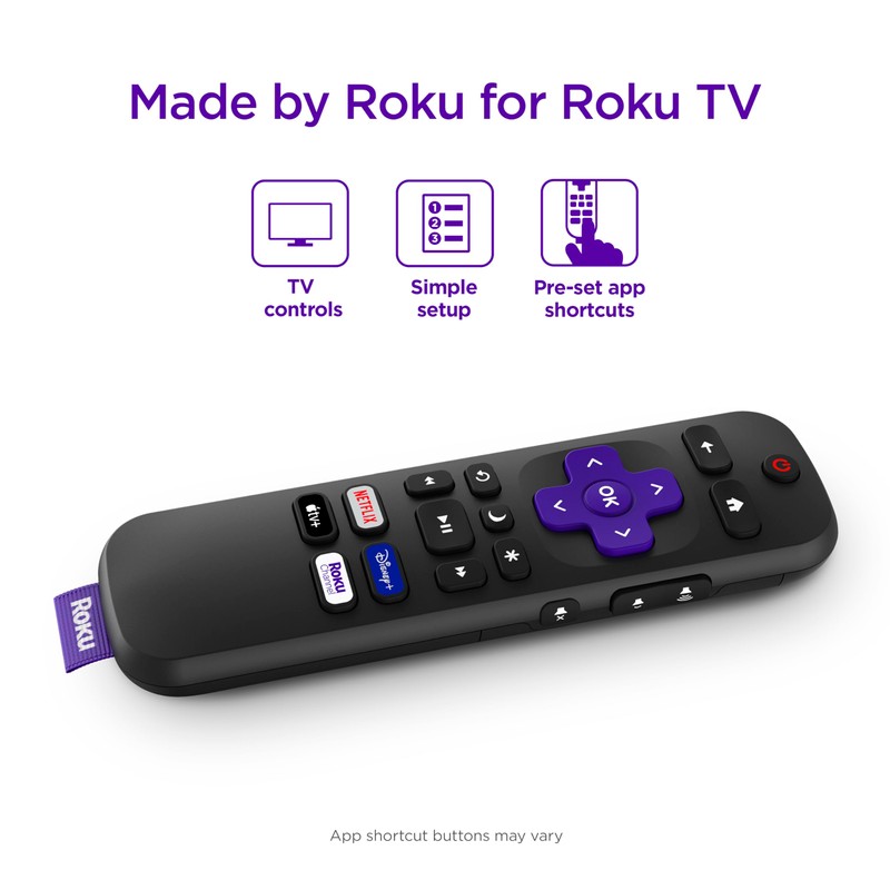 - No juggling remotes - Power up your Roku TV, adjust the volume, mute, and control your streaming with an official Roku remote.