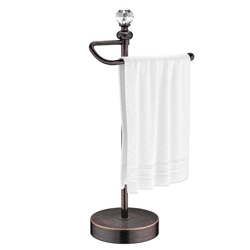 ROLABAM Heavy Weighted Hand Towel Holder(with Crystal Ball) Standing Hand Towel Holder Total Height 15.7'' for Kitchen,Bathroom,Vanity,Classic Decorative Metal Hand Towel Stand,Oil Rubbed Bronze