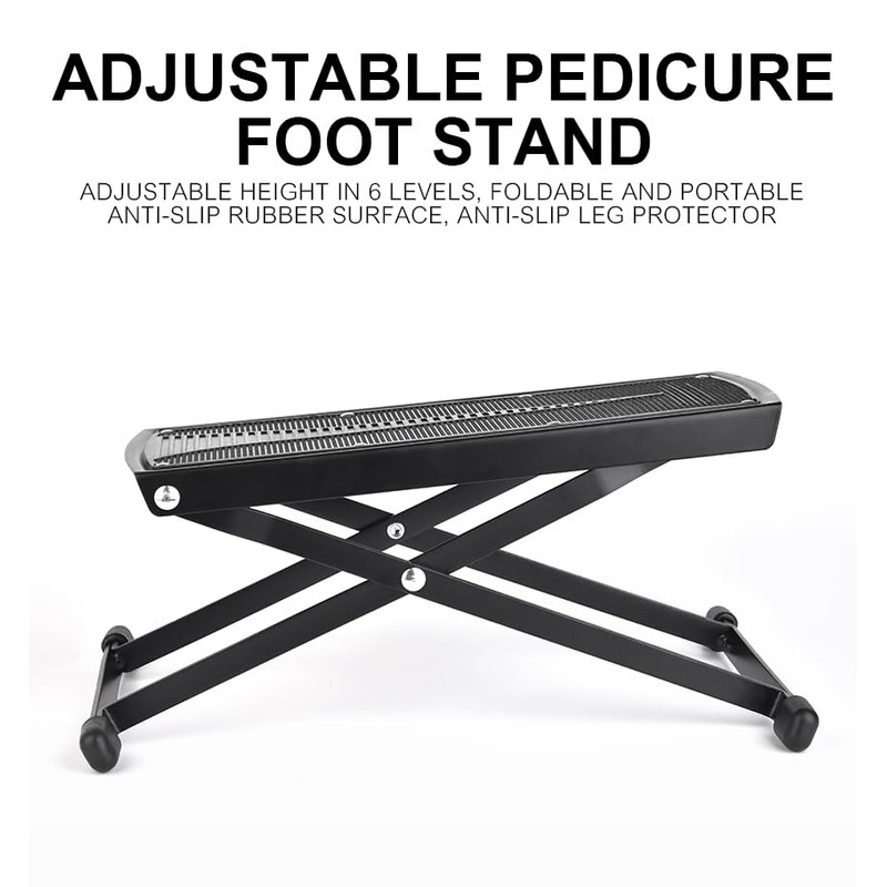 Rolabling Adjustable Pedicure Foot Rest Stand Beauty Footrest for Pedicures, Home Foot Spa, Nail Salon, Black, ABS Plastic, Stainless Steel, Foldable, Portable