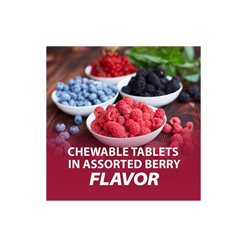 Rolaids Advanced Antacid Plus Anti-Gas 60 Chewable Tablets, Assorted Berry, Heartburn and Gas Relief