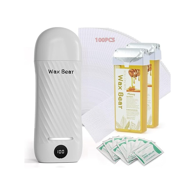 Roll-On Hair Removal Kit - Soft Wax Heater, Refillable Cartridges for Efficient At-Home Waxing Solution (Off White)