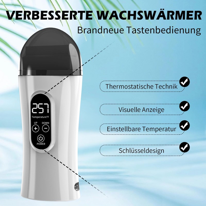- Roll-on wax warmer: Demine digital wax machine has a thermostatic construction that keeps the wax at a fixed temperature to ensure easier waxing. The visual LED indicator allows you to pay attention to the temperature of the wax at any time and offers you a comfortable and soothing hair removal experience.