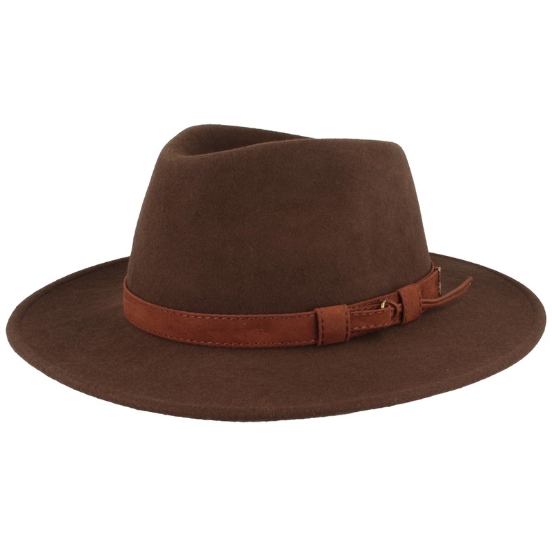 Rollable Outdoor Felt Hat | Trekking Hat | Wool Hat Made of 100 % Wool - Waterproof & Foldable - with Leather Fittings & Hat Inserts - For Men & Women - brown, size: 59