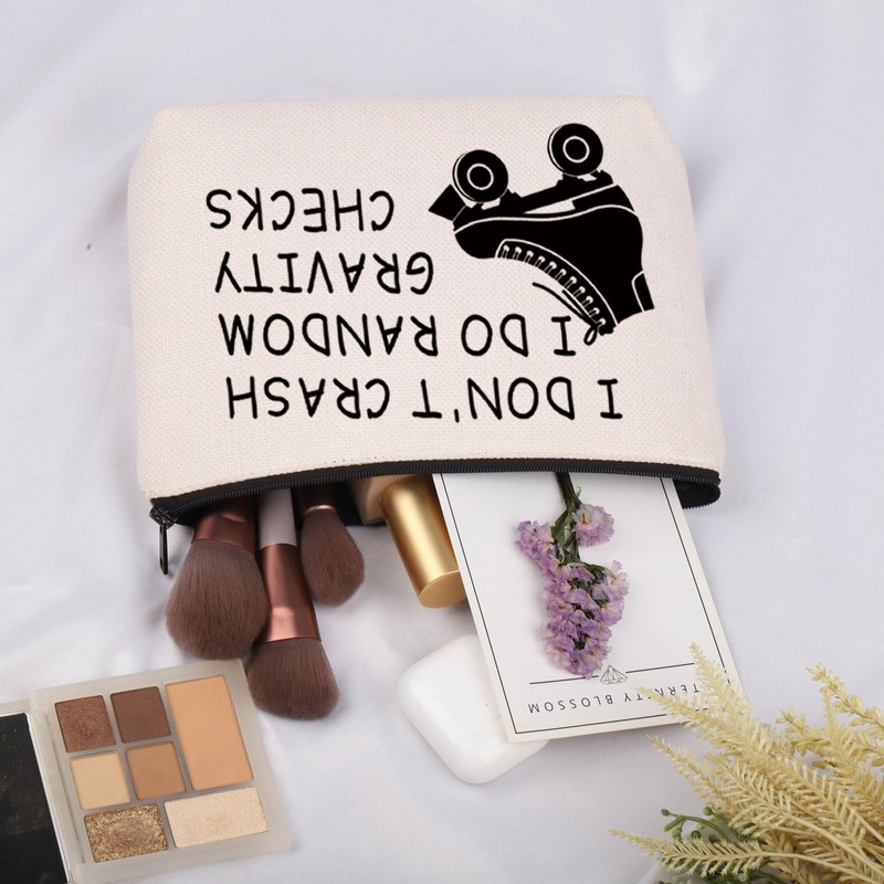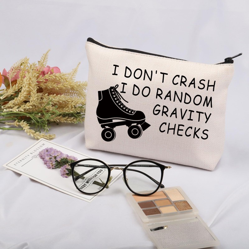 Roller Skate Gift I Don't Crash I Do Random Gravity Checks Cosmetic Bag Roller Girl Gift (I Don't Crash CA Bag)