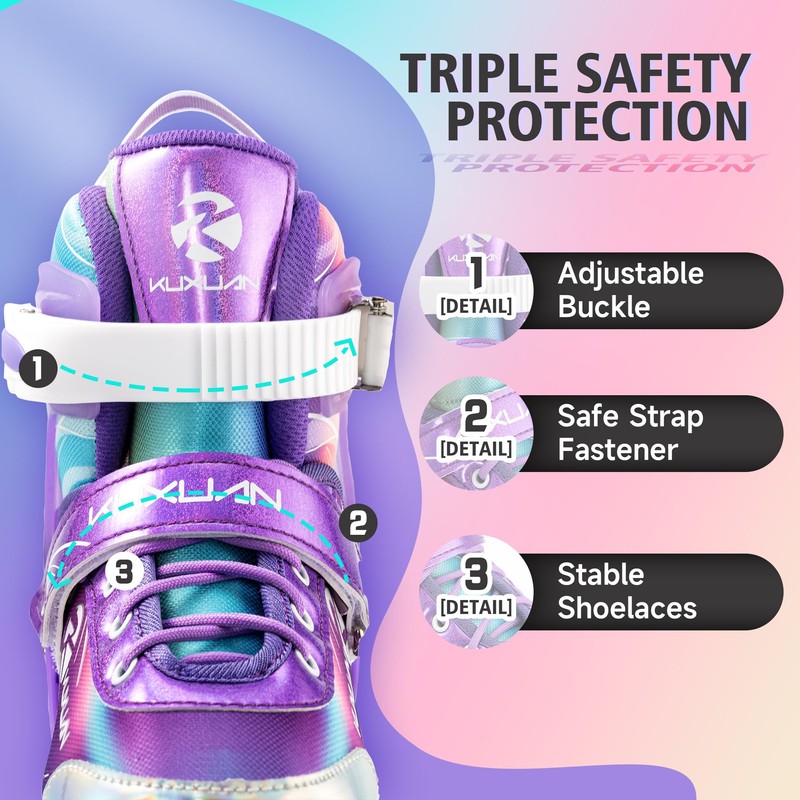 - 100% SATISFACTION - Kuxuan roller skates come with a 100% Satisfaction. Reach out to us if there’s ever anything you need. We are dedicated to address any product/service issues and is committed to delivering a 5 star experience for all buyers.