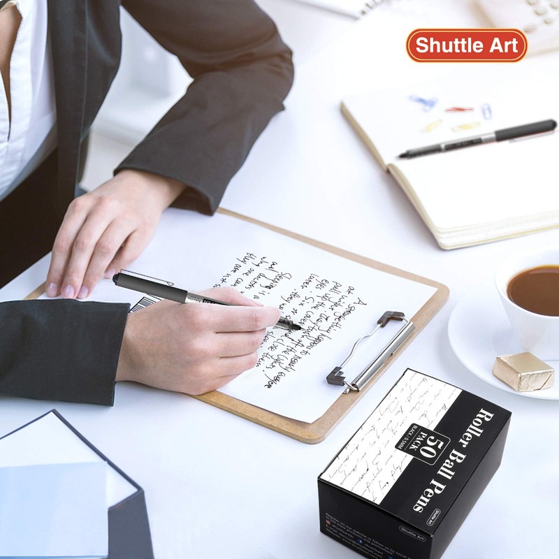- CONVENIENT VALUE PACK: Shuttle Art 50 pack 0.5mm roller ball pens are all with black ink. 50 Combo Pack will fully meet your demands of daily writing, marking and signing.