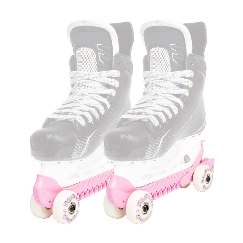 The Rollergard is a new innovative rolling skate guard that allows an ice hockey player or skater the option of roller skating on their ice blades when they are done at the ice arena. Hockey coaches of all age groups now have the option of warming up their players prior to their scheduled ice times. Parents of small kids can now arrive at the rink at their practice time, what a time saver. The Rollergard is built to last with durable non-marking wheels, ABEC 5 bearings, and lightweight plastics. Improve your skating stride and endurance at the same time. The Rollergard is a great addition to any skater's bag. Skate into the rink, out of the rink, and anywhere that has smooth hard surfaces. The Rollergard uses indoor/outdoor wheels with an 89A durometer. One Size Fits All!