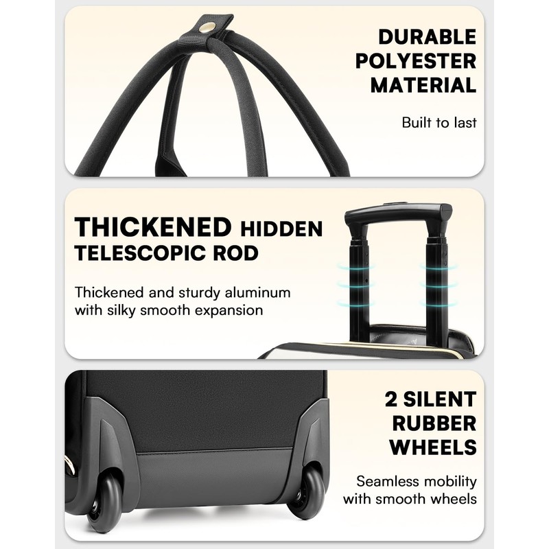 - Premium, Lightweight & Water-Resistant Materials: Constructed from 900D high-density polyester, this roller backpack offers excellent tear resistance. The handle is reinforced with durable polyester, and the bottom & back are coated with waterproof material to prevent damage from bumps and scratches.