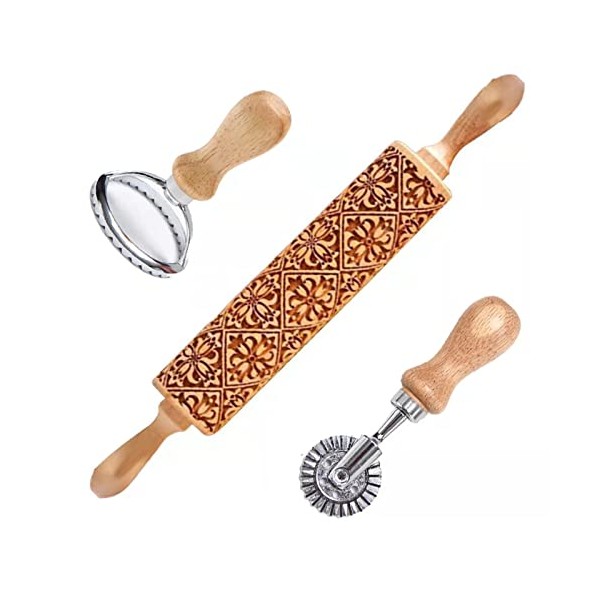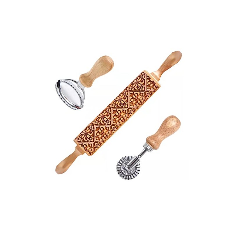 Rolling Pin for Baking, with Cookie Mold & Cutter, Embossing Rolling Pin, Eng...