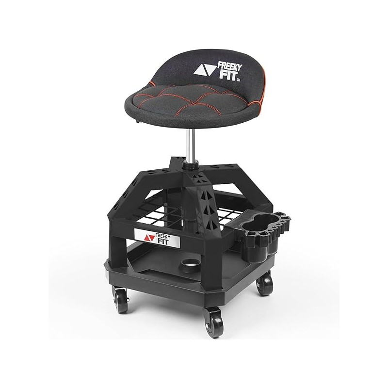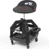 Rolling Shop Stool for Garage with Casters, DO02-Adjustable Height 360° Swivel Shop Seat with Tool Tray Storage, 330 LBS Capacity Padded Mechanic Stool, Black