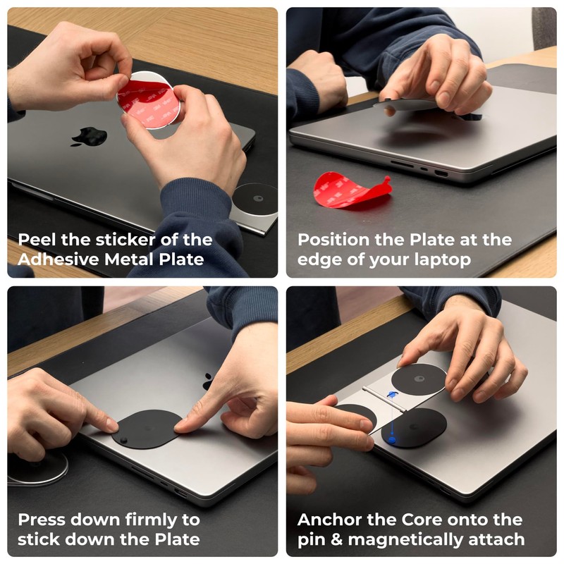 • Magnetic Attachment with Metal Plate Adhesive: Edge Pro Core easily attaches to a metal plate sticker that adheres securely to your computer or laptop. If you prefer not to attach a sticker to your device, Edge Pro Core can also function in standalone mode, providing flexible use without permanent attachment. The metal plate and disc cannot be reused because they can lose their adhesive strength and when removed, they can be bent.