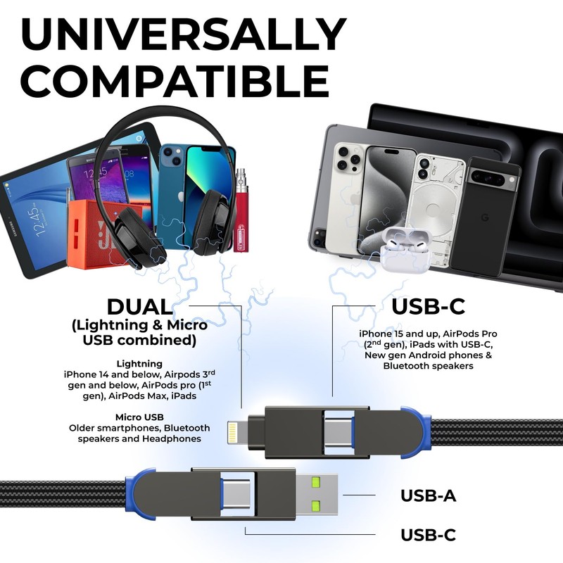 - FAST-CHARGING - USB-C multi-cable allows for ultra fast-charging, up to 100W, and Apple’s fast-charging up to 18W - even charge laptops and tablets - so you’ll never be without power again