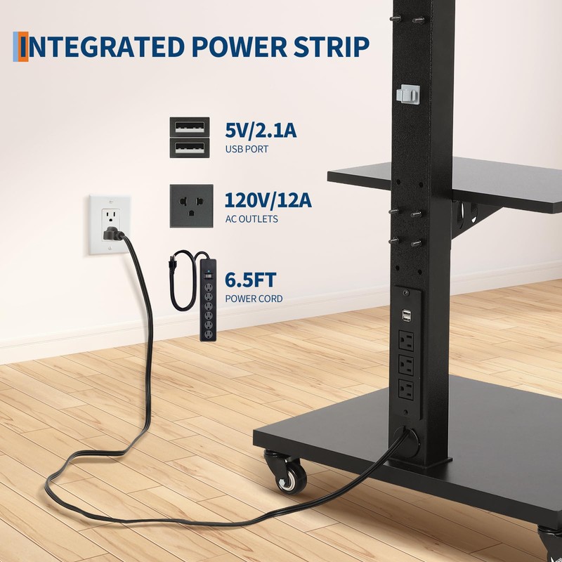 - Smart Power Integration & Cable Management: Featuring ETL-certified electrical components, the built-in power hub includes 3 AC outlets (5V/2.1A) and a 6.5-foot reinforced power cord for connecting consoles, soundbars, or streaming devices. The USB interface (120V/12A) and rear cable channels streamline connectivity, reducing clutter while maintaining safety compliance.