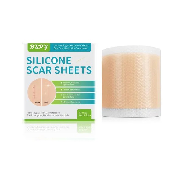 Cinta de Silicona para Eliminar Cicatrices (rollo de 4cm x 3 m), Parche para Tratamiento de Cicatrices Quirúrgicas Profesionales, Reutilizable, Se Puede Utilizar para Cesárea, Quemaduras, Cirugí