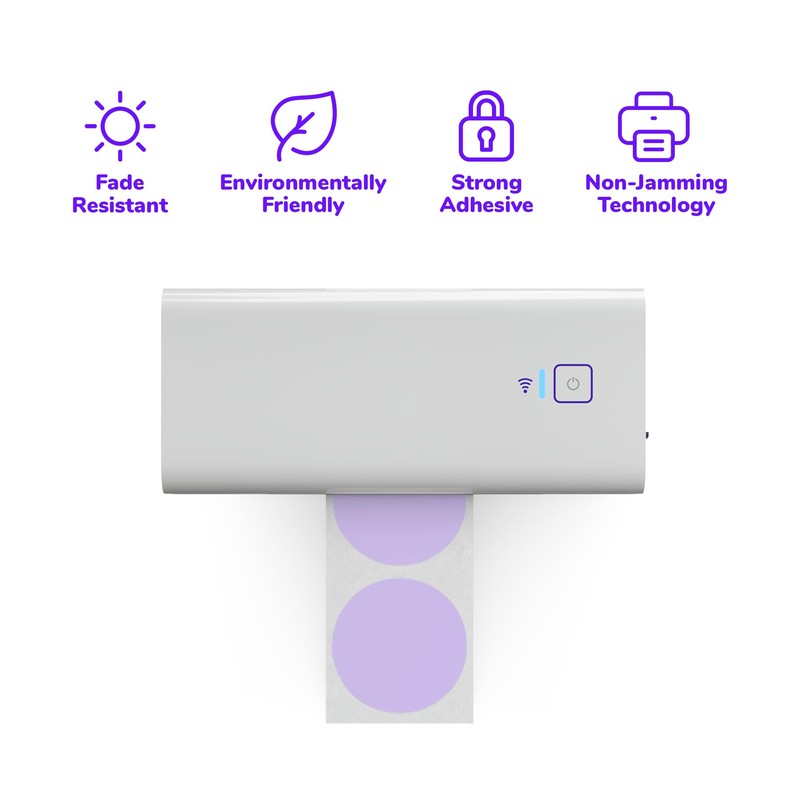 Rollo Circle Thermal Labels 2 Inch - Roll of 1,000 Round Direct Thermal Sticker Labels - Multi-Purpose Thermal Printer Stickers (Purple Thermal Labels)