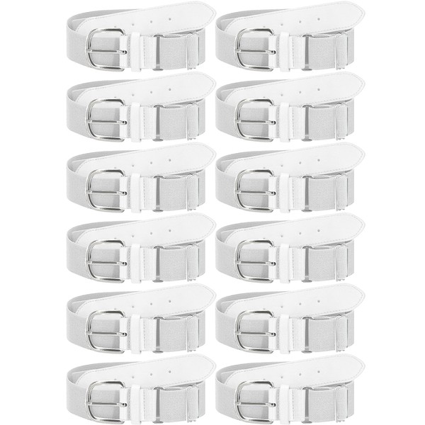 ROLVNHTV 12 Pieces White Baseball Belts Adult Bulk Softball Belts Packs Elastic PU Leather Uniform Belt Adjustable Teal Softball Belt Stretch Sports for Man and Woman