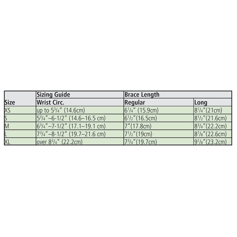 - Size small fits wrist circumference 5.75"-6.5" (14.6-16.5 cm), regular length brace measures 6.5" (16.5 cm)