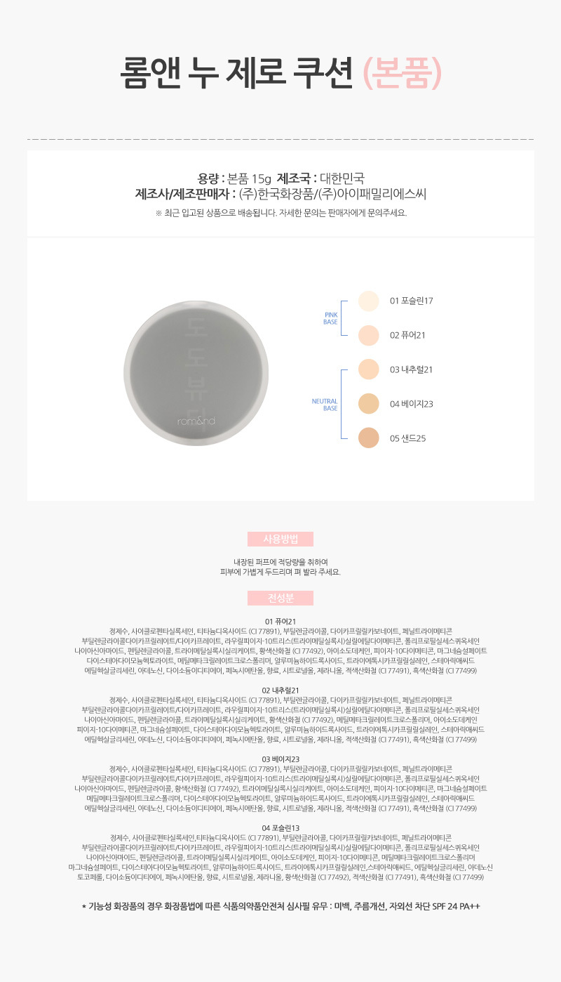 Rom&nd Nu Zero Cushion 15g (main product) / 롬앤 누 제로 쿠션 15g (본품)