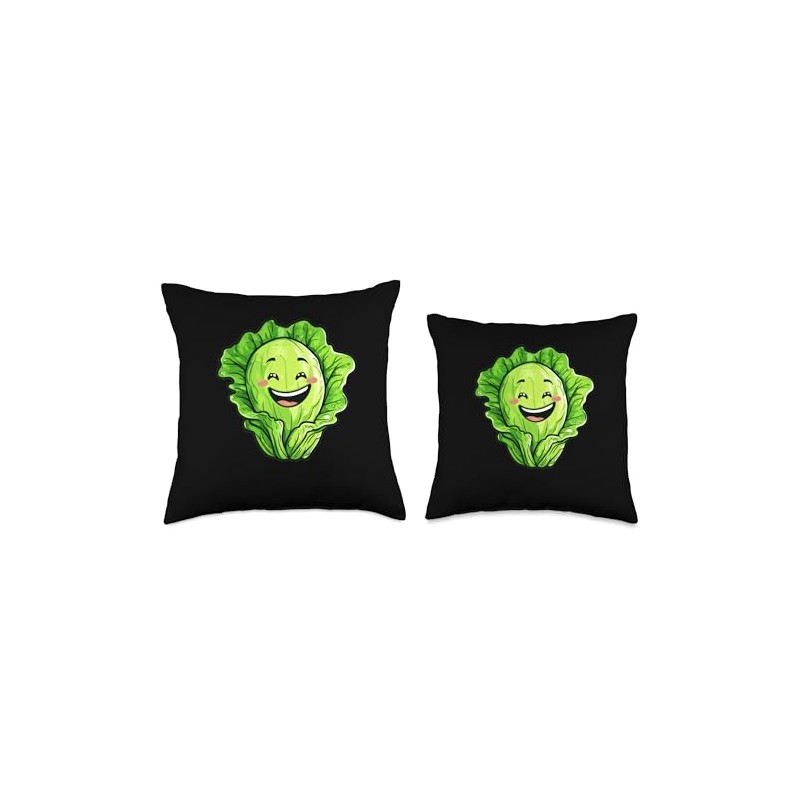 Romaine Lettuce Smiling Comic Style Throw Pillow