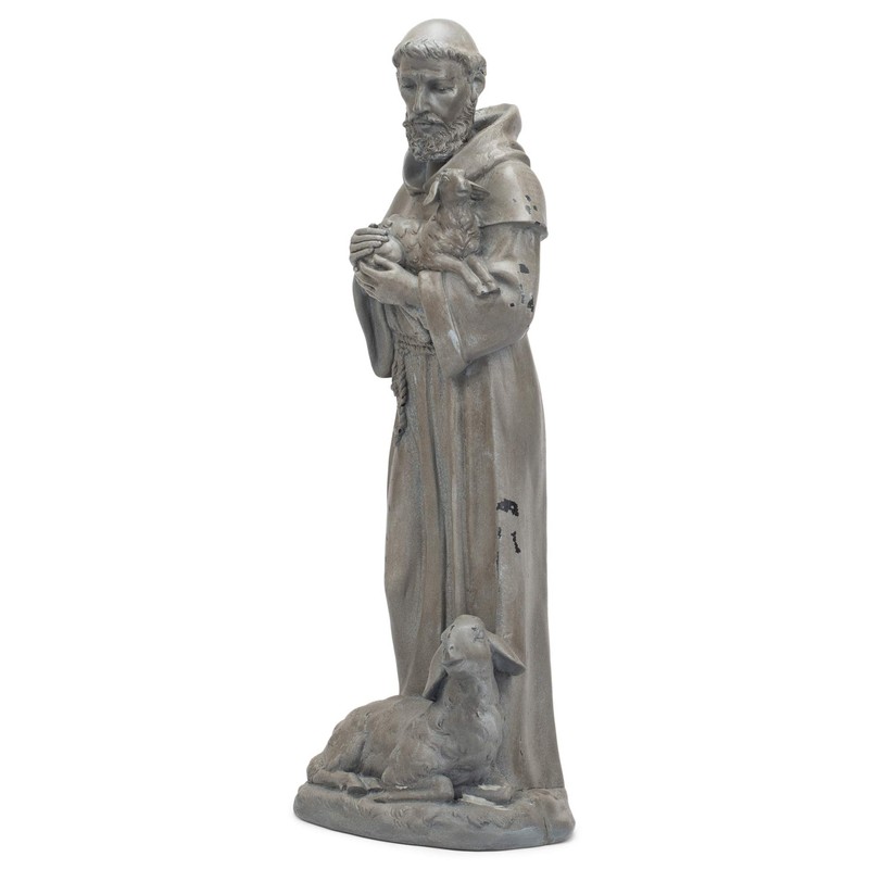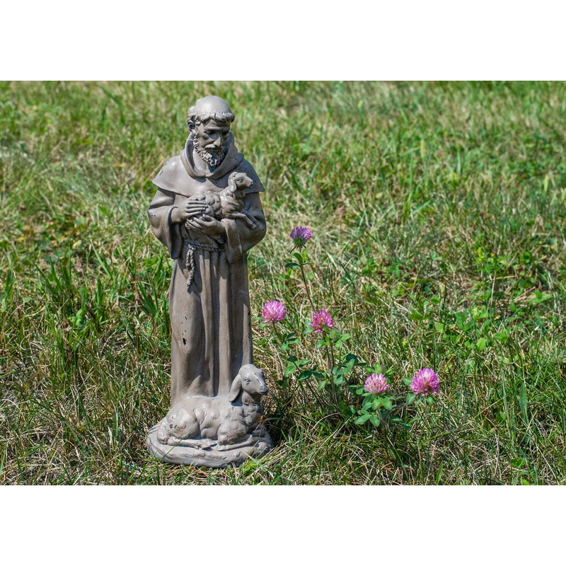 - Saint Francis of Assisi Garden Statue is handsomely crafted for life-like appearance; St Francis is shown gently holding a lamb with mother sheep resting at his feet