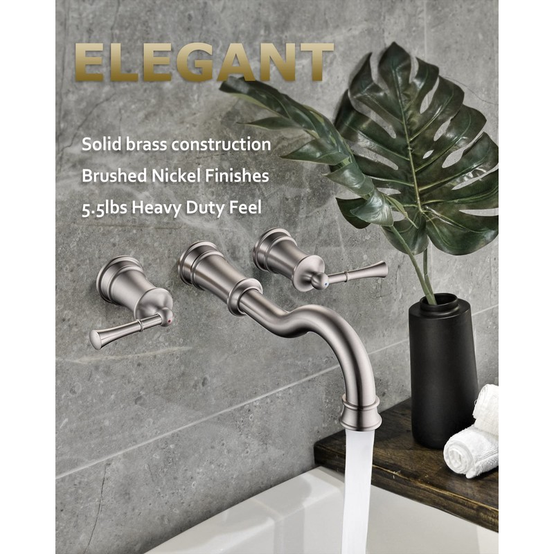 Roman Bathtub Faucet Wall Mount Widespread Tub Filler with Rough-in Valve 3 Holes 2 Lever Handle Elegant Classic Spout for Bathroom, Brushed Niickel