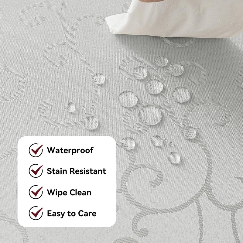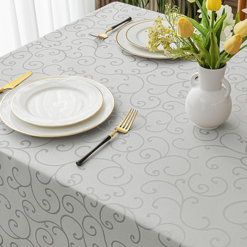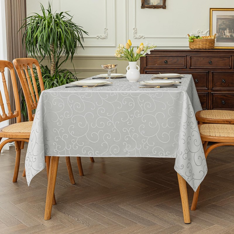 Romanstile Washable Tablecloth 140 x 180 cm Grey Rectangular Jacquard Damask Tendril Tablecloths Outdoor Tablecloth Spring Table Linen for Living Room, Dining Table, Christmas Parties, Birthday, New