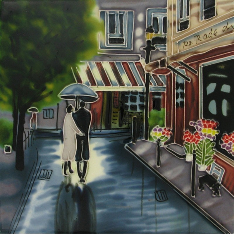 - Romantic Stroll, Decorative Ceramic Picture Tile