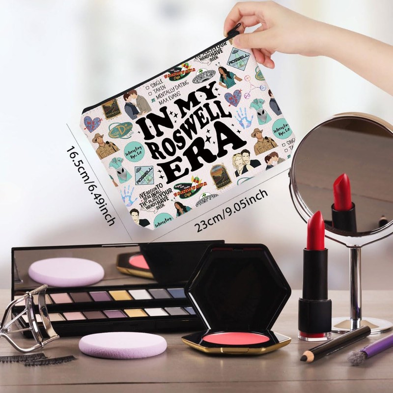Romantic TV Show Inspired Makeup Bag for TV Show Fans, Roswell Era Bag Eu, Cosmetic bag with print