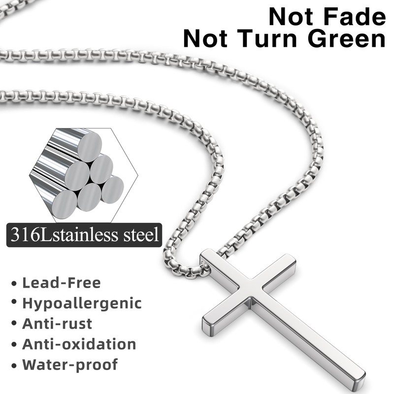- Material:The men's cross necklace is made of 316L stainless steel, lead free, hypoallergenic, waterproof. High polishing process, smooth edge, make it more comfortable to wear