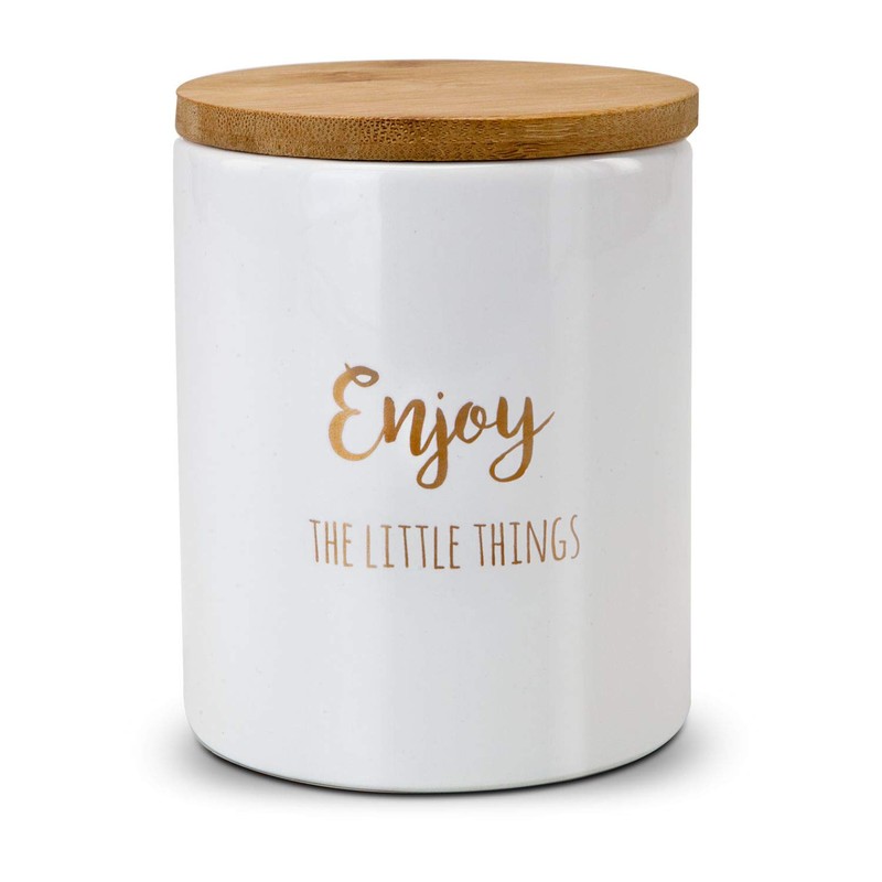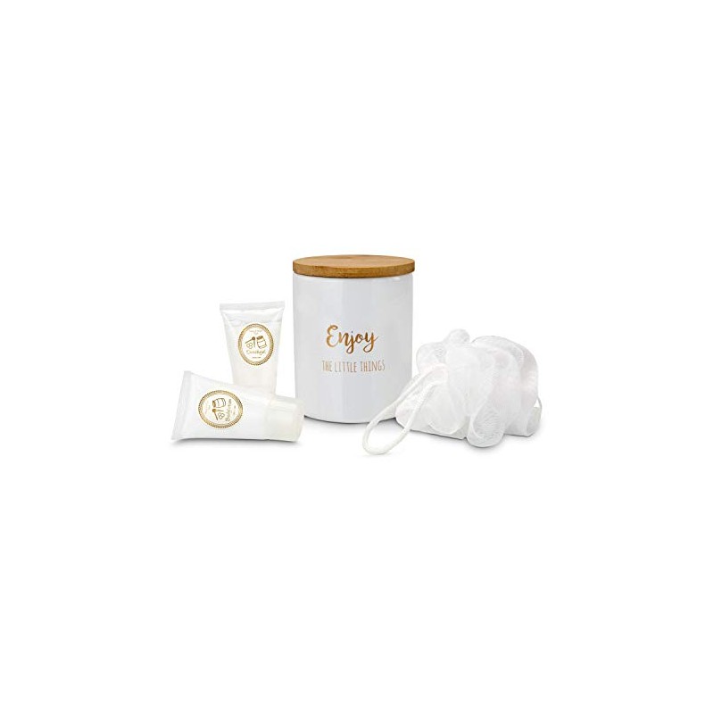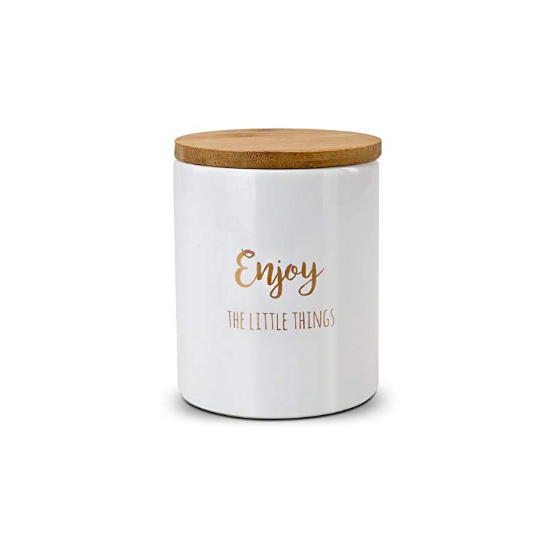 - Packaged in an elegant white ceramic pot with golden print "Enjoy the little things" - This is ideal as a decorative accessory (e.g. as a make-up or toothbrush cup) for your bathroom and is therefore preserved for a long time.