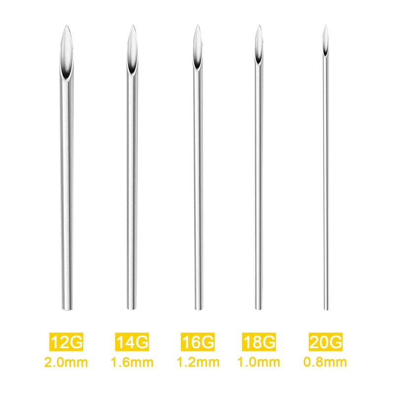 - VALUE PACKAGE - Includes mixed 100pcs ear nose piercing tools, 20pcs each size in 12G 14G 16G 18G 20G. All piercing tools are individually packed and sealed, for disposable use only.