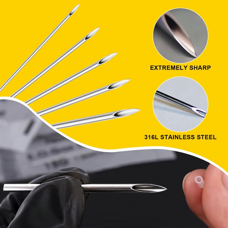 - PREMIUM QUALITY - The ear nose piercing kit are made by 316L stainless steel, durable to use for added confidence. No burs on the surface, hollow and sharp tip, provide more smooth while piercing.