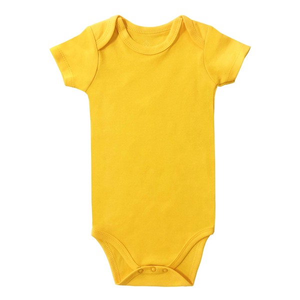 ROMPERINBOX Unisex Solid Baby Bodysuit 0-24 Months (6-9 months, yellow short sleeve)