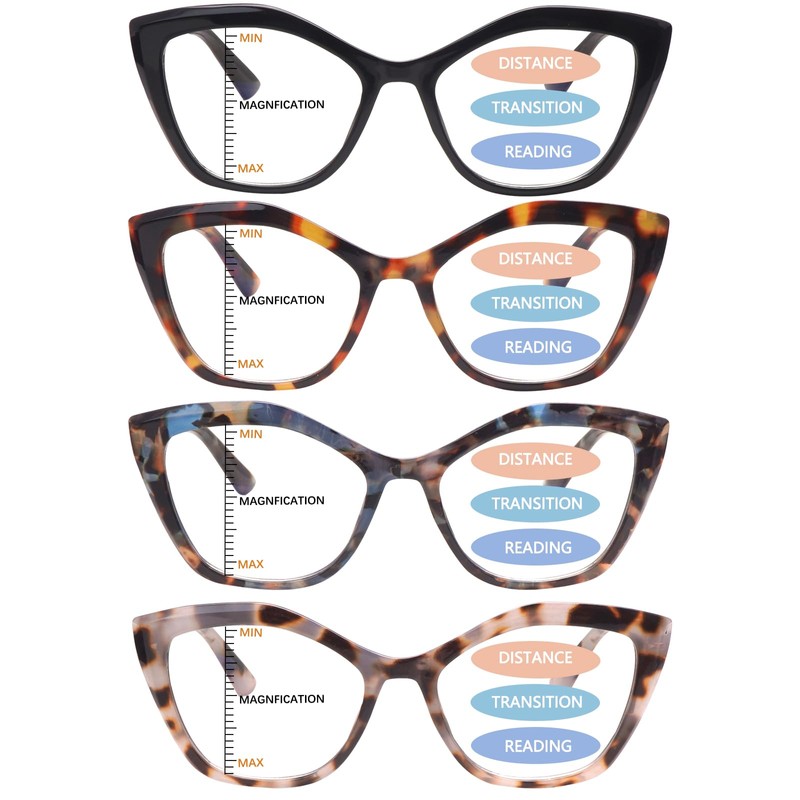 - Progressive reading glasses 4 pairs: multifocal progressive reading glasses designed for a variety of daily activities, 3-in-1 visual zones for a versatile vision correction experience, full-focus lower portion for reading, transitional middle zone, and half-focus upper portion for walking/shopping, new users usually adjust within 1-2 weeks of normal wear