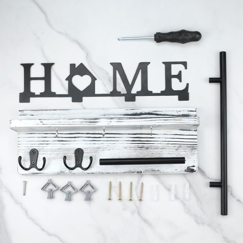 Wall Key Holder with Key Holder and Wooden Mail Organizer with Shelf - No more cluttered side tables and lost personal items.