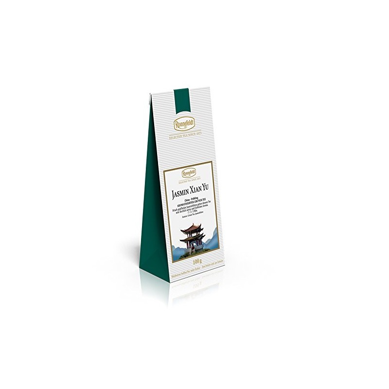 - Jasmine Xian Yu by Ronnefeldt - A flavoured green tea with a brewing time of 2-3 minutes. Please always observe the recommended water temperature and brewing time - this is the only way to get a safe food.