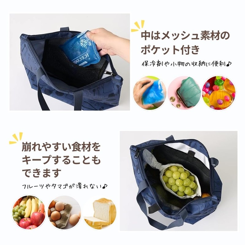 RONNOS Zippered Shoulder Bag, Eco Bag, Large Capacity, Foldable, Cold Insulat...