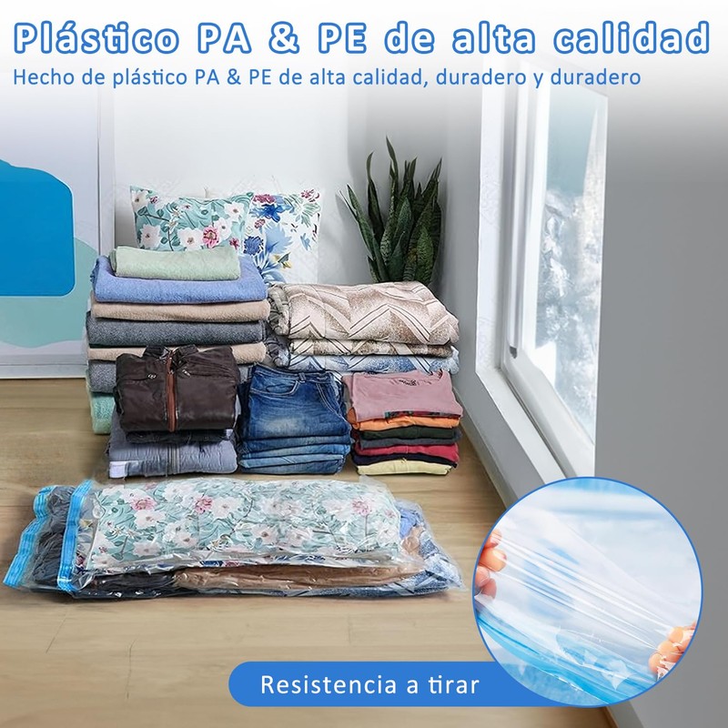 - Material de Alta Calidad y Reutilizables: Las bolsas de compresión al vacío están hechas de plástico PA y PE de alta calidad, que es reutilizable y duradero