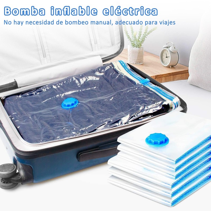 - Con Bomba Eléctrica: Le proporcionamos una bomba de aire eléctrica que le permite empacar su equipaje rápida y fácilmente antes de su viaje sin tener que tirar la bomba manual una y otra vez