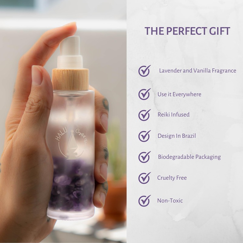 Room Spray | Lavender and Vanilla fragrance | Energized in Reiki + Crystals Amethyst included | Aromatherapy | Spray for Sleep