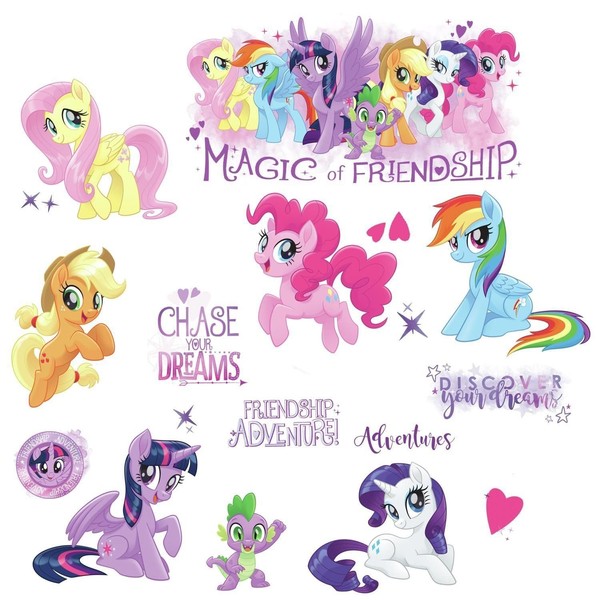 RoomMates RMK3551SCS My Little Pony The Movie Peel & Stick Wall Decals with Glitter, Multicolor, 8"