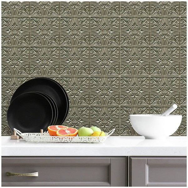 RoomMates TIL4625FLT StickTiles Gold Tin Peel and Stick Tile