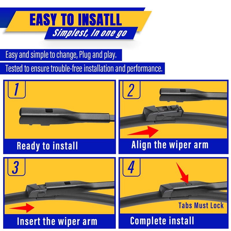 - Performance: High service life, quiet application, clean the front windshield thoroughly, ensure clear visibility, all-weather and all-season wiper blades