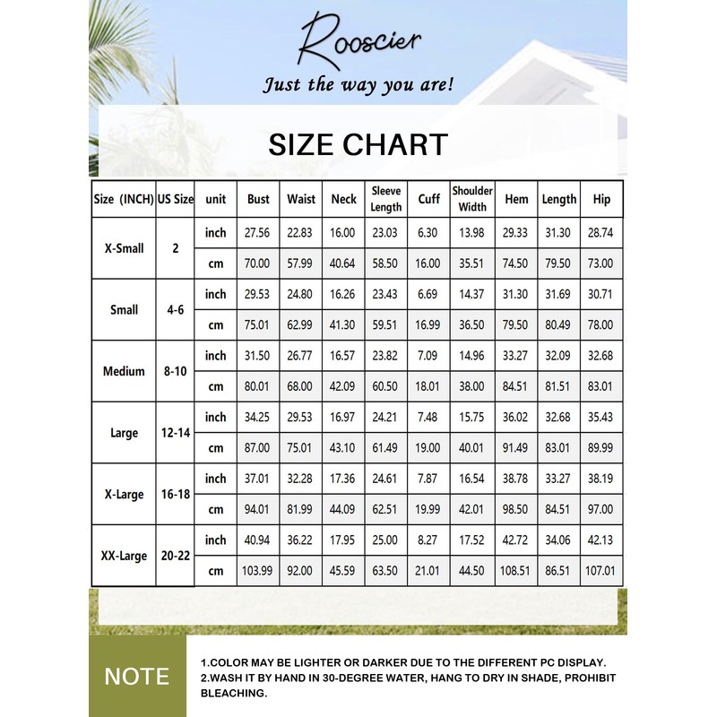 - Please check the Rooscier's size chart carefully before placing purchase and hope you can order the perfect size for yourself.