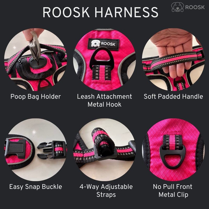 - QUALITY PROMISE: Here at ROOSK, we love dogs and they deserve the best accessories! That's why we make our Dog Harnesses with the highest quality premium materials.