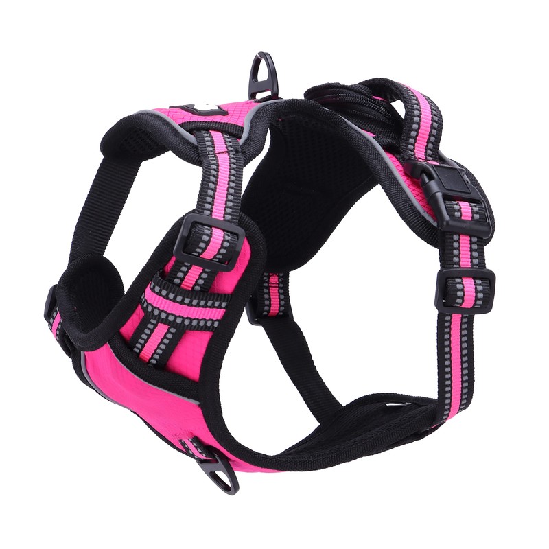 ROOSK Dog Harness | No-Pull, Reflective, 4-Way Adjustable w/Poop Bag Holder | Ultimate Comfort, Soft, Padded Waterproof Oxford w/Airmesh | 2 Leash Clips (Pink, Small)