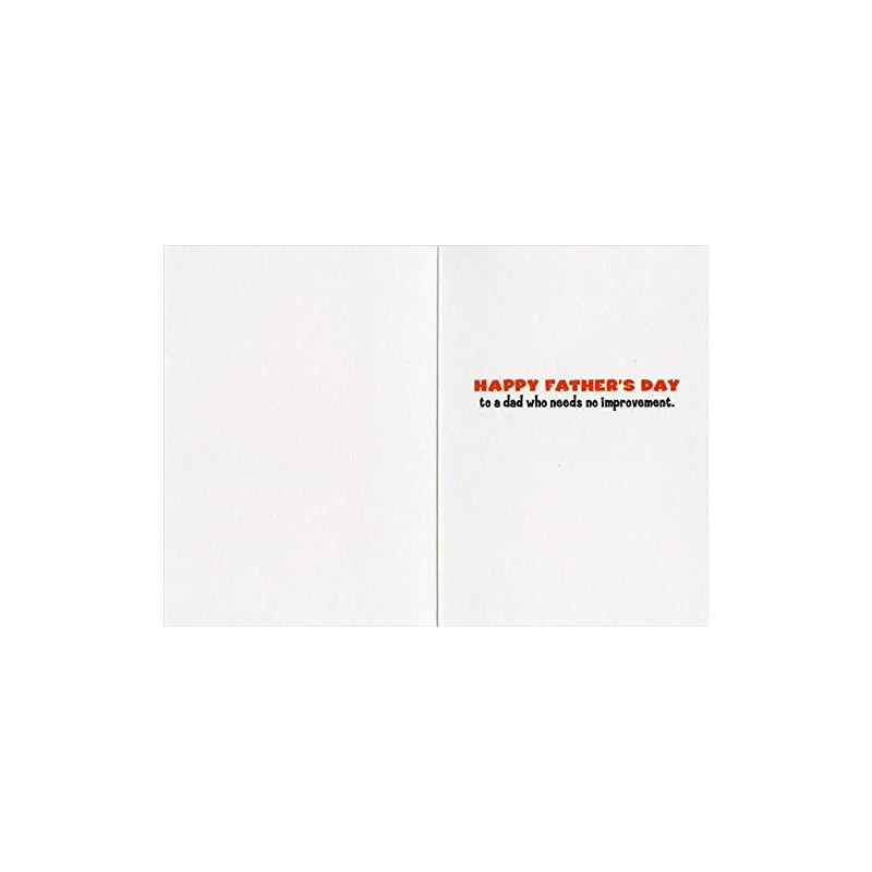 The interior of this Avanti Press father's day card design reads: Happy Father's Day to a dad who needs no improvement. The card measures 4.75x6.7 inches and is printed on recycled heavy cardstock. Includes 1 card and 1 envelope. The card has the following special features: recycled paper. Made in the USA. Printed on FSC certified recycled paper.
