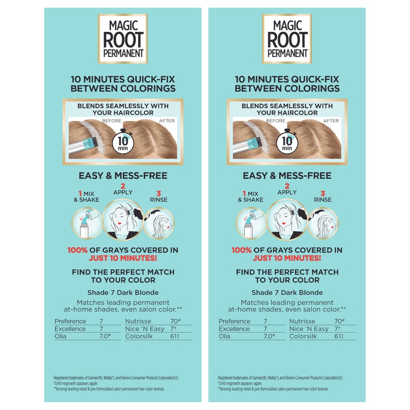 L’Oréal Paris Magic Root Permanent Hair Color, 10 Minute Hair Dye Kit to Rescue Roots with 100% Gray Hair Coverage, 7 Dark Blonde, 2 Pack (Packaging May Vary)