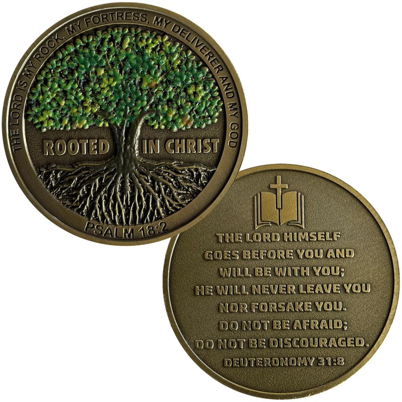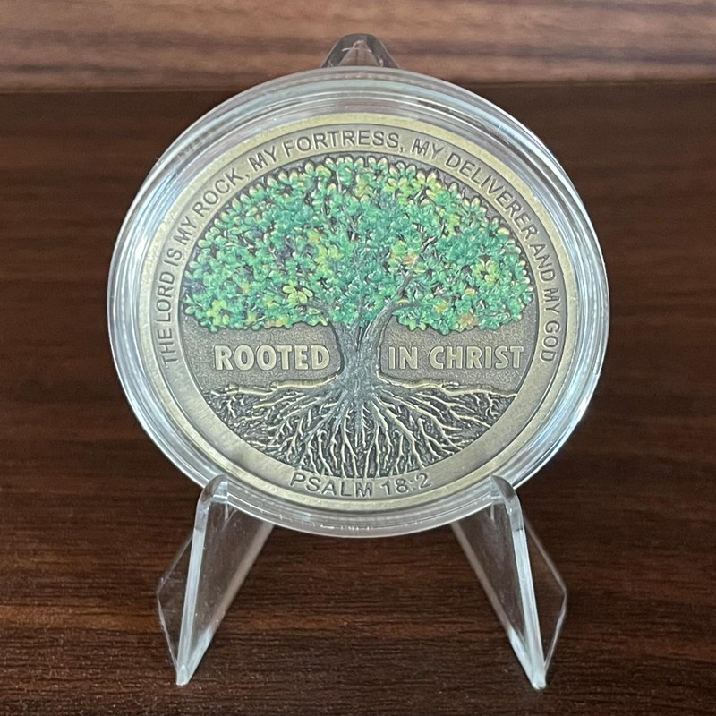 Rooted in Christ Solid Christian Challenge Coin Faith-Based Challenge Coin Bible Verse